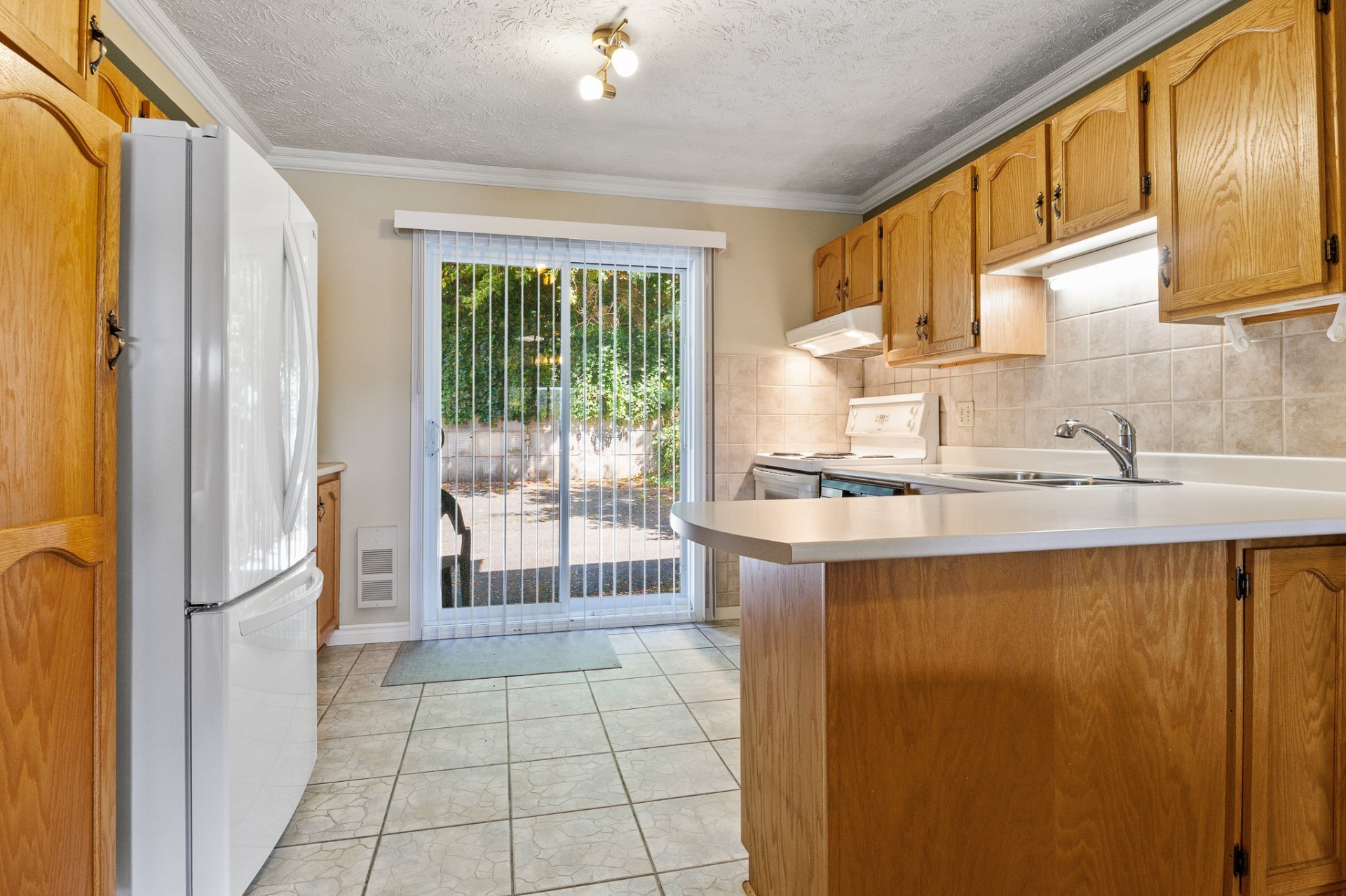 Luminaires, hotte de poêle, lave-vaisselle (non fonctionnel), rideaux et tringles, stores, bacs municipaux.